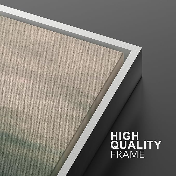 MUDECOR Framed Canvas Print Wall Art Dark Green Abstract Misty Landscape Moody Illustrations Modern Art Decorative Chic for Living Room, Bedroom, Office - 16"x24"x2 White