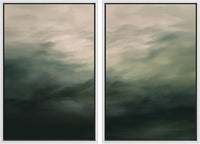MUDECOR Framed Canvas Print Wall Art Dark Green Abstract Misty Landscape Moody Illustrations Modern Art Decorative Chic for Living Room, Bedroom, Office - 24"x36"x2 White