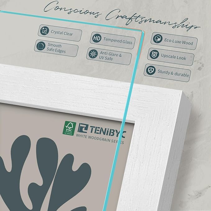 Timeless Elegance: Experience the serene beauty of our white wood grain frame. Expertly crafted by TENIBYC's dedicated designers, it blends seamlessly with any decor, adding a touch of timeless charm to your space.