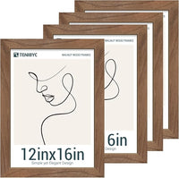 12x16 Frame 4 Pack - Brown Walnut, Natural Woodgrain, HD Tempered Glass, Picture Frame for Wall