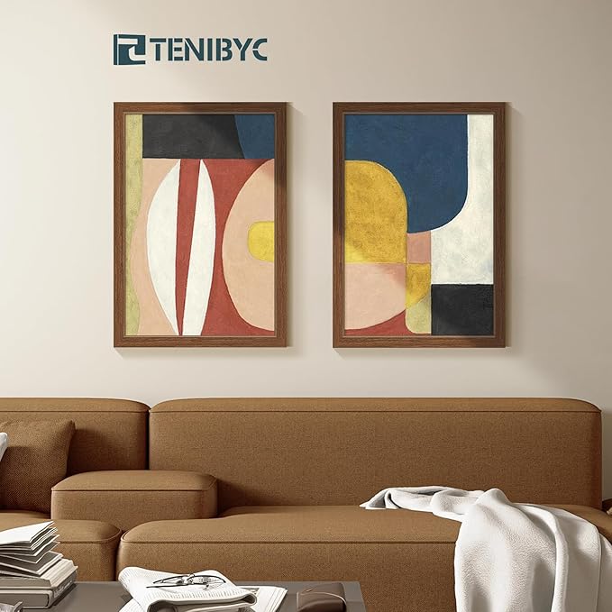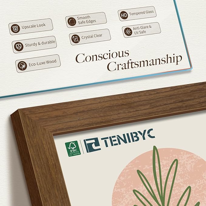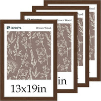 13x19 Picture Frame Set of 4, Textured Brown Wood & HD Tempered Glass, 19x13 Frame Display Posters, Photos and Puzzles, Wall Hanging