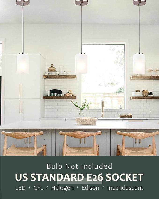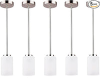 1-Light Mini Pendant Light Fixtures, Industrial Chandelier Hanging Ceiling Lights with Opal White Shade, Adjustable Height, Brushed Nickel Pendant Lighting, 5 Pack