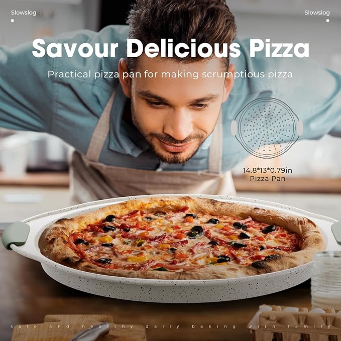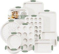 11-Piece Non-Toxic Baking Set, Stackable Nonstick Cookware with Heat-Resistant Handles - Includes Cookie Tray, Round Cake Pan, Muffin Cups, Pizza Pan & Loaf Baker, White&Light Green