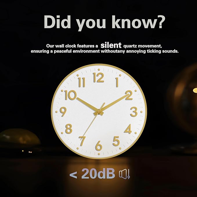 Mosewa Wall Clock 8 Inch, Battery Operated Silent Non-Ticking Modern Analog Clock Decorative for Kitchen, Bedroom, Office, Living Room(White Gold)