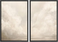 MUDECOR Framed Canvas Print Wall Art Neutral Cloudscape Soft Abstract Sky Illustrations Modern Art Decorative Bohemian Colorful Chic for Living Room, Bedroom, Office - 16"x24"x2 Black