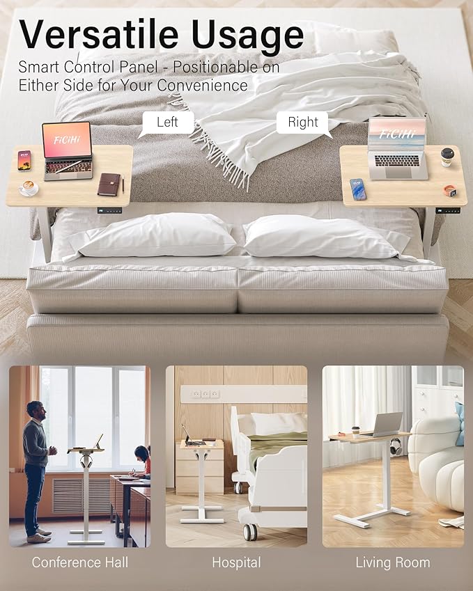 Mobile Standing Desk with Wheels - Electric Height Adjustable Small Movable Laptop Desk, Portable Rolling Computer Sit Stand Side Table for Home Office, Sofa&Bedside Use(27.6",Natural) Sale