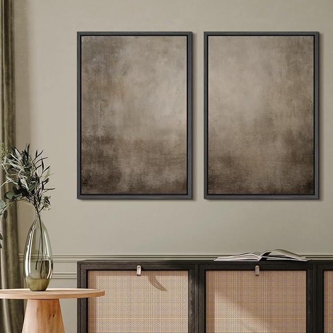 MUDECOR Framed Canvas Print Wall Art Monochromatic Gradient Abstract Minimalist Gray Illustrations Modern Art Decorative Bohemian Colorful for Living Room, Bedroom, Office - 24"x36"x2 Black