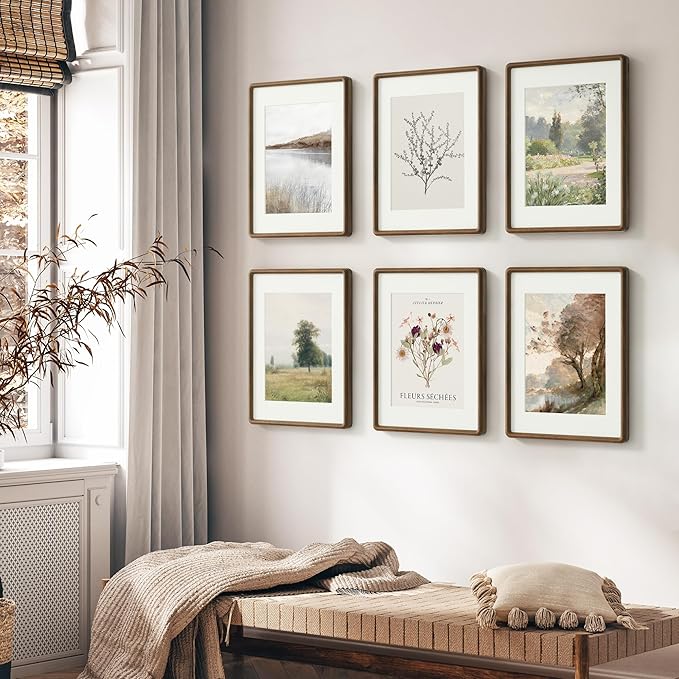 11x17 Picture Frame, Solid Walnut Wood Frame with Real Glass, Hard Wood 11 by 17 Photo Frame for Wall & Tabletop Display, 11x17 Picture Frame Matted to 8x12, Natural Walnut Color