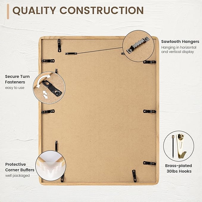 11x14 Picture Frame, Solid OAK Wood Frame with Real Glass, Hard Wood 11 by 14 Photo Frame for Wall & Tabletop Display, 11x14 Picture Frame Matted to 8x10, Natural OAK Color