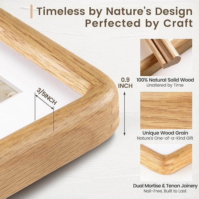 12x16 Picture Frame, Solid OAK Wood Frame with Real Glass, Hard Wood 12 by 16 Photo Frame for Wall & Tabletop Display, 12x16 Picture Frame Matted to 8.5x11, Natural OAK Color