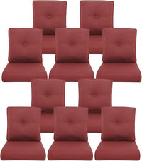 10-Piece Outdoor Patio Cushion Set - Fade & Water Resistant with Removable Olefin Cover, 22x24x4 Inch Memory Foam Cushions for Wicker Sectional Sofa – Red/Buckle